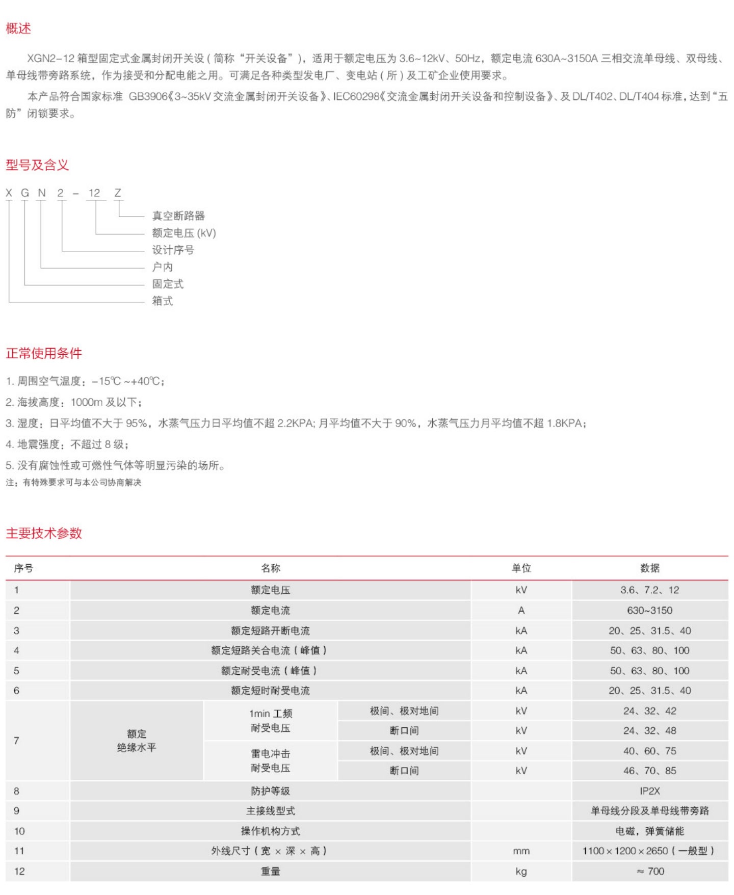 XGN2-12 箱型固定式金属封闭开关设备